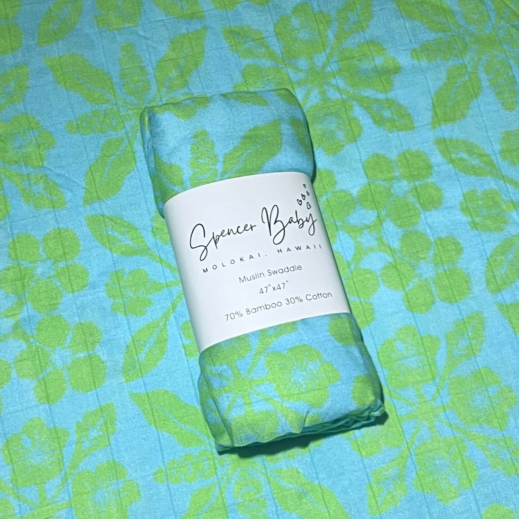 47" x 47" bamboo cotton, blue green quilt print